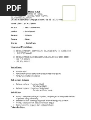 Lihat cara & contoh resume, klik tajuk entri ni sebenarnya tiada format rasmi menulis resume terutamanya dari segi susunan. Contoh resume bahasa melayu 1. Dalam resume, anda hanya menyebutkan aspek pengalaman kerja dan keterampilan yang relevan dengan pekerjaan yang anda lamar. Kemahiran dan kebolehan profesional dalam resume. Korang tengah cari contoh resume ke tu?