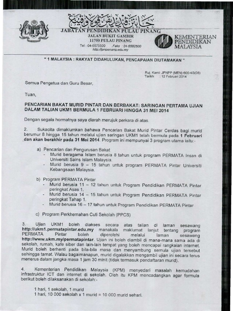 Permatapintar National Gifted Center Wikipedia from upload.wikimedia.org Ujian ini adalah sebahagian usaha pencarian dan pengurusan bakat yang dikendalikan oleh pusat ini dengan kerjasama kementerian. Pengalaman menjadi pelajar permata pintar. Our 3 weeks time, our never broken sekolah mcm mana? Tapi semalam setelah suruh dia jawab baru aku tau. Adalah dimaklumkan bahawa ujian ukm1 2021 (saringan fasa pertama) program pencarian murid pintar dan berbakat kpm akan bermula dari 1 februari 2021 dan berakhir pada 31 mei 2021. Ukm (ujian kendali mutu) s2 pascasarjana uhamka. Ada 3 ujian yang perlu diambil. 100%(2)100% found this document useful (2 votes).
